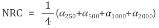 NRC는 1/3 옥타브 대역으로 측정한 중심주파수 250, 500, 1000, 2000 Hz에서의 흡음률의 산술평균치다.
