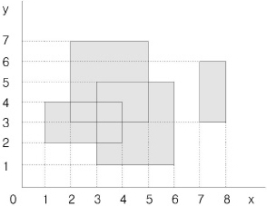 이 직사각형들이 차지하는 면적을 구하는 프로그램을 작성하시오.