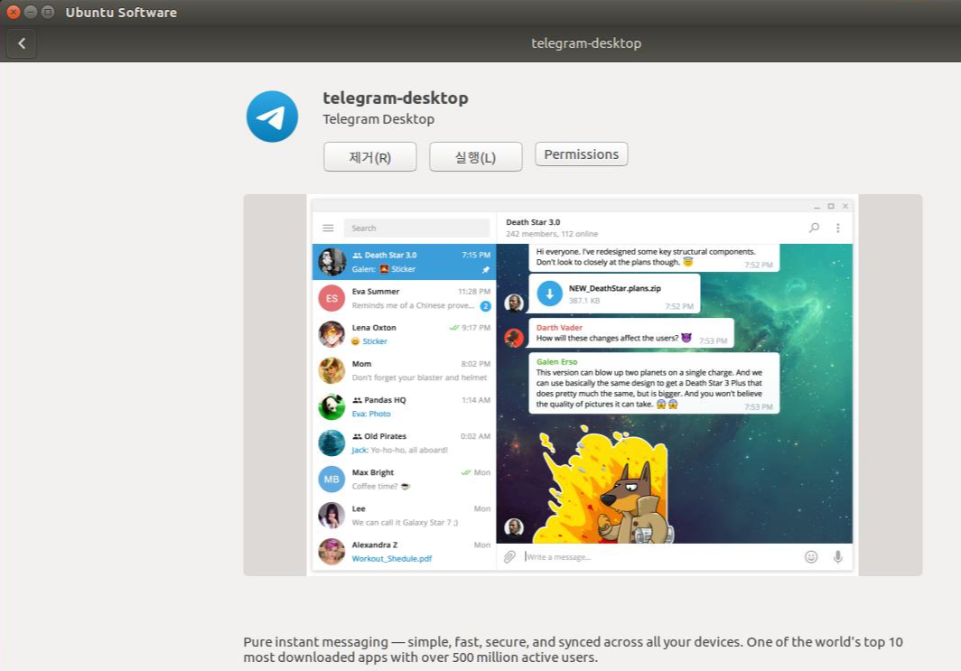 Ubuntu Software에 들어가서 Telegram을 검색한 후, telegram-desktop을 설치하면 된다.